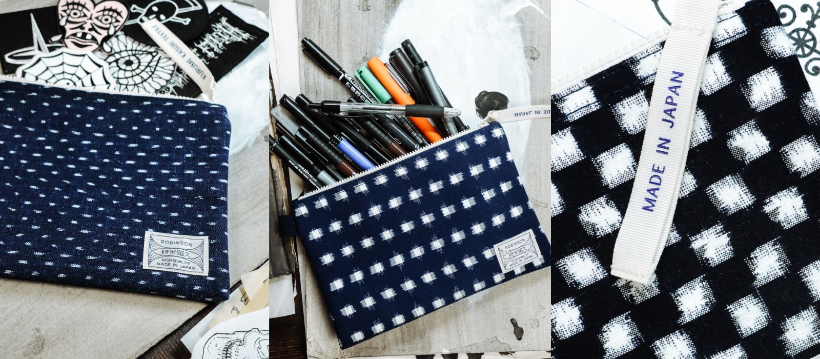 Pochettes japonaises en Kurume Kasuri